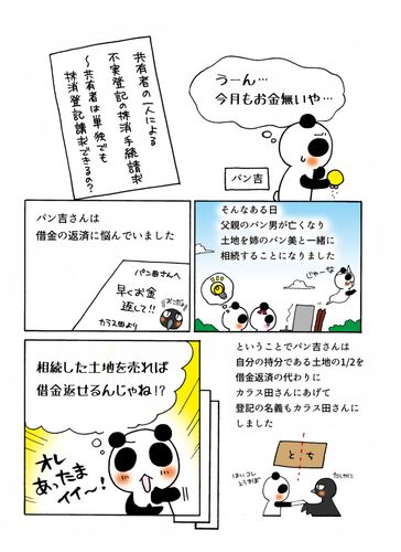 平成15年7月11日 持分全部移転登記抹消登記手続等請求事件 最高裁 第二小法廷*実際の事例では、パン男さんの死亡にパン吉さんが絡んでおり、相続人はパン吉さん含めて4名いました。 ポイントは? 共有者というのは、自分の持分については自由に処分をするこ…